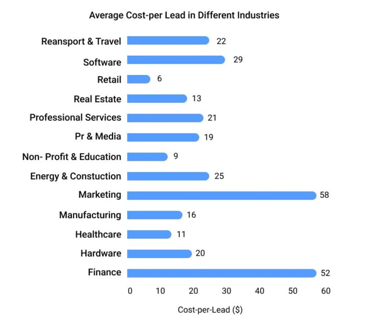 The commission rates can differ based on the industry. Below we have given the average cost per lead in distinct industries. The finance and marketing industry has the highest cost per lead.