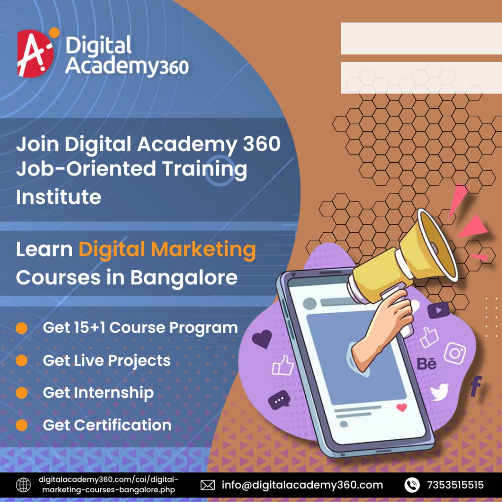 Digital Academy 360 is offering digital marketing courses in Bangalore, take training on 100+ modules, 20+ certifications with affordable fees & placements https://www.digitalacademy360.com/institutes/digital-marketing-courses-bangalore/