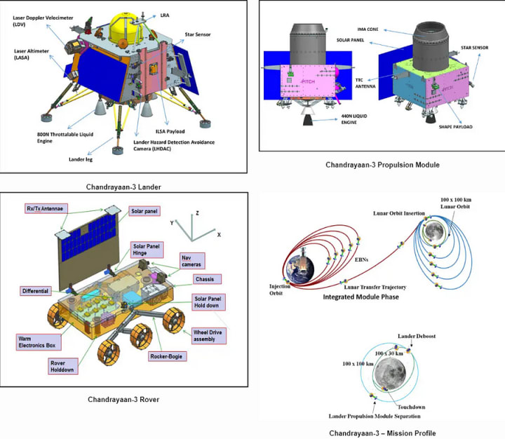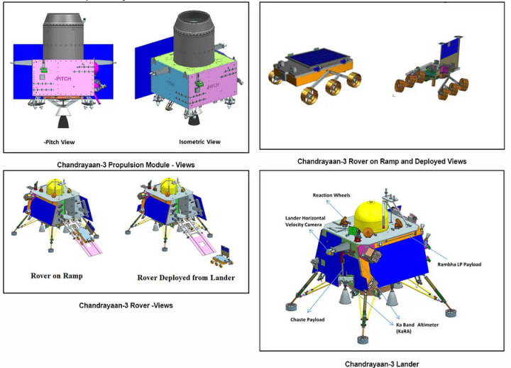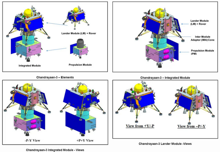 Three dimensional views of Chandrayaan-3 modules are provided below: