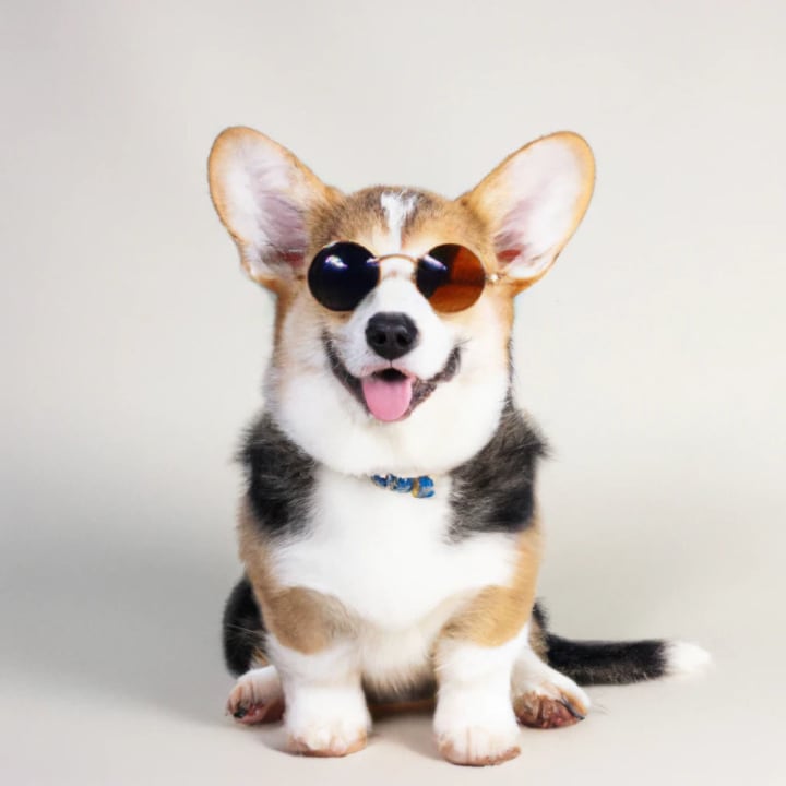 -F prompt= "a photo of a happy corgi puppy with fancy sunglasses on sitting and facing forward, studio light, longshot" \