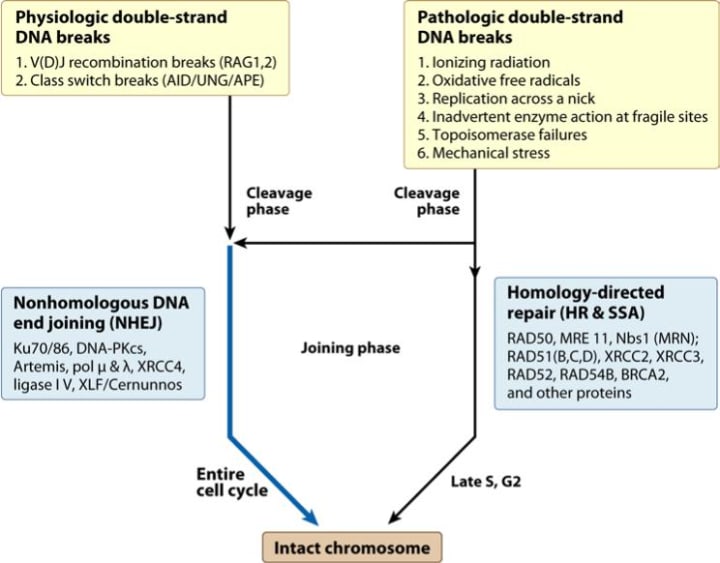 - Lieber M R. The mechanism of double-strand DNA break repair by the nonhomologous DNA end-joining pathway. Annual Review of Biochemistry. 2010, 79(1):181-211.
