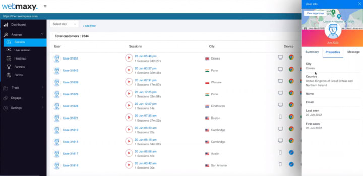Here are the features of Webmaxy that will help you gather all the user behavior data you might need.