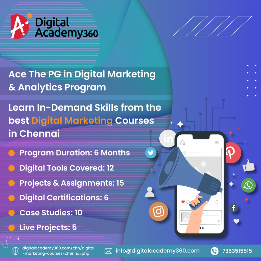 Digital Academy 360 is offering digital marketing courses in Bangalore, take training on 100+ modules, 20+ certifications with affordable fees & placements https://www.digitalacademy360.com/institutes/digital-marketing-courses-bangalore/