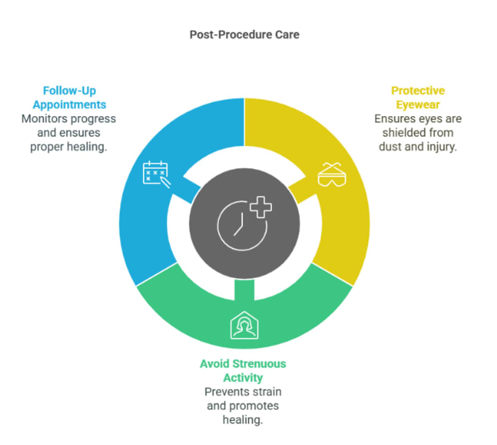 Talk to your doctor about post-surgery instructions, such as wearing an eye shield and using prescribed eye drops to prevent infection.