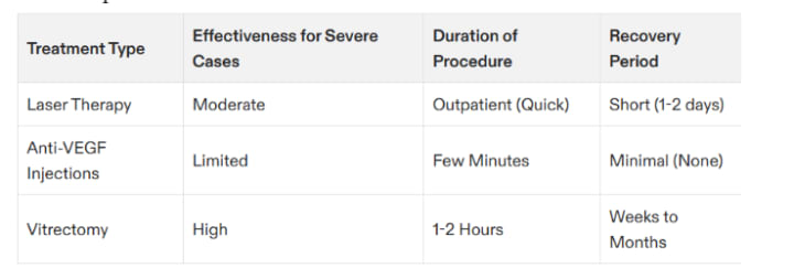 - Laser Therapy (Panretinal Photocoagulation): Used to shrink abnormal blood vessels.