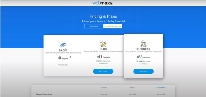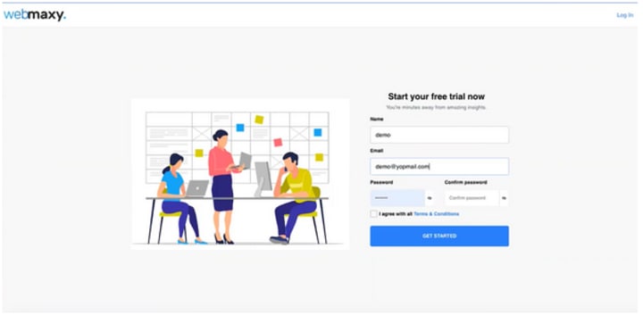 Sign up on Webmaxy and create a heatmap for your website for free.