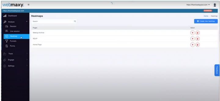 Now, in order to view the heatmap that you have just created, click on the play button in front of the corresponding page title. You will be redirected to a new page where you will see something similar to the image below.