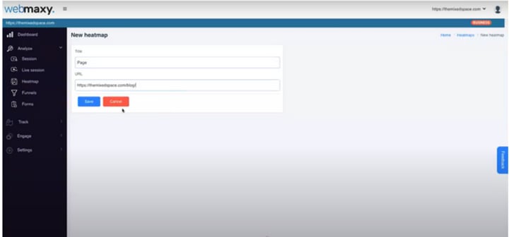 Enter a title for the page you want to create a heatmap for. It doesn’t need to be the same as the title of the page. Paste the URL in the corresponding field and click “Save”. Then, you will be redirected to the following page.