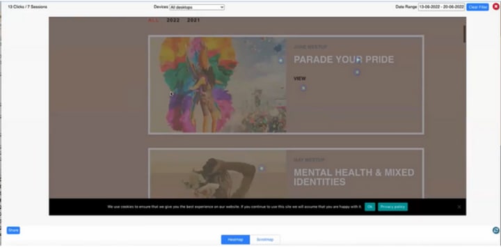 Use the desktop and mobile icon provided on the bottom-left of the screen of the heatmapper to see the scrollmap for different devices.