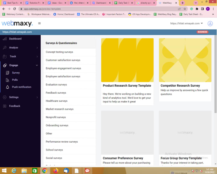 WebMaxy Analyzer can help you to create surveys from scratch, you can create your own survey or use the pre-designed survey templates.