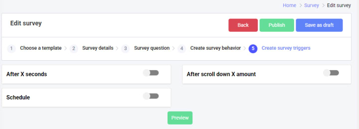 By clicking on the ‘Preview’ option, you can see how your survey will appear to your users.