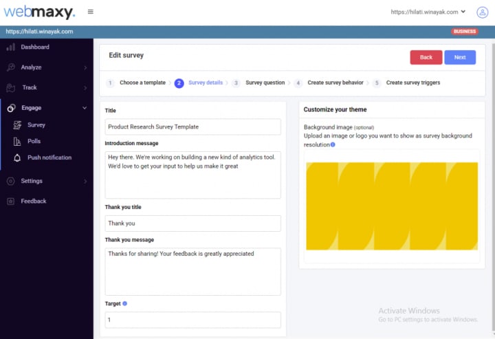 With WebMaxy Analyzer, you can set up surveys quickly and ask the right questions to your target audience.