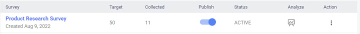 On the survey details page, select the number of people (target) that you want to take the survey from.