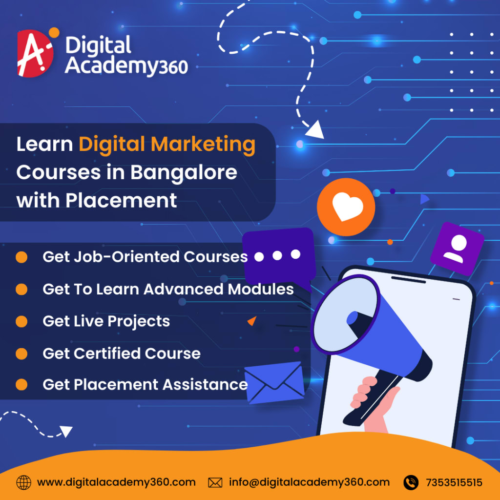 Digital Academy 360 is offering digital marketing courses in Bangalore, take training on 100+ modules, 20+ certifications with affordable fees & placements https://www.digitalacademy360.com/institutes/digital-marketing-courses-bangalore/