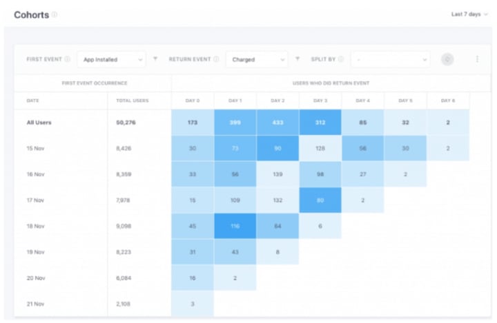 To understand this mobile app performance metrics the Cost Per Acquisition, divide the total marketing spend by the total number of users. If you want to measure the cost of making an in-app purchase happen, divide it by the conversion you are focusing on.