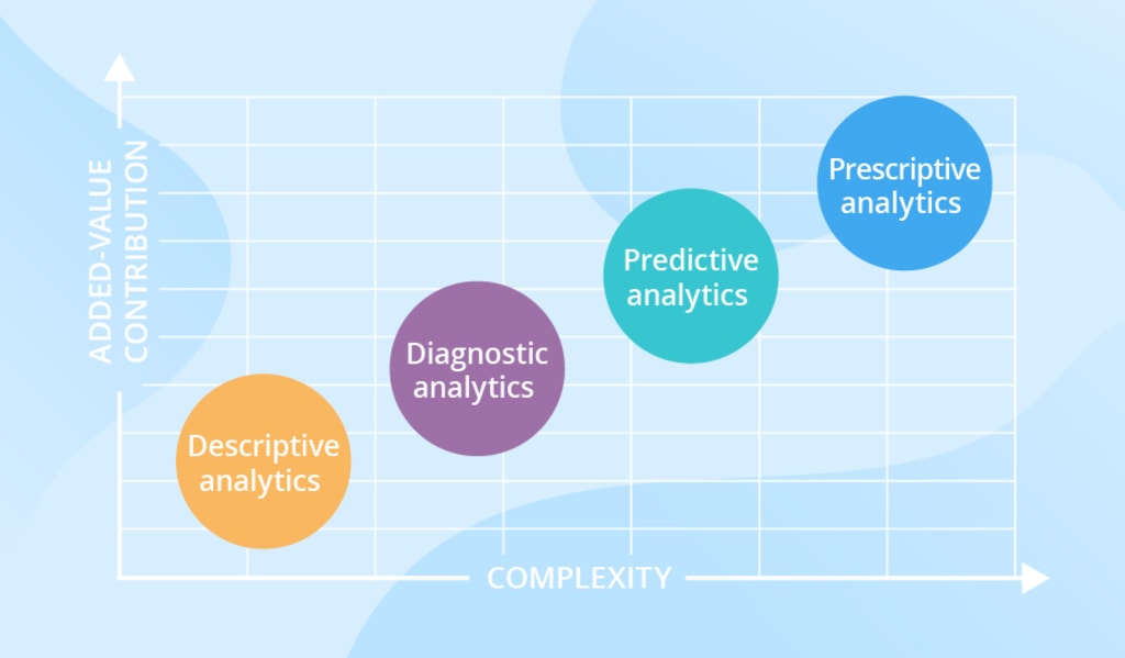 We'll start with the descriptive analytics procedure, which is the first pillar of modern data analysis. Organizations most frequently employ this kind of data analytics to understand past events and customers. It is also the simplest of the four data analytics types we will discuss today. It examines unprocessed data, identifies trends, and describes what occurred or is occurring due to the data. It aids in your understanding of the trends throughout time. This kind of data analysis is the ideal course of action if you want to learn more about how your sales vary from month to month or whether your channel views have improved. For more detail on types of analytics, refer to the data science course online by Learnbay.