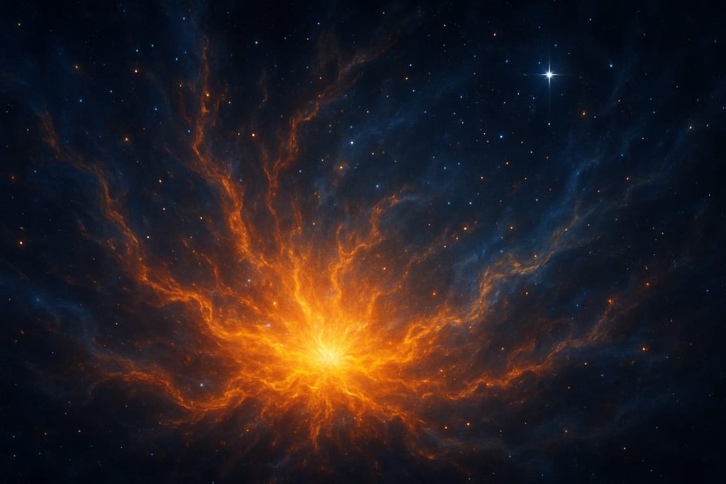 A supernova explosion can briefly outshine an entire galaxy, releasing enormous energy and scattering elements like gold, iron, and uranium into space. These materials later form new stars, planets, and even living organisms.