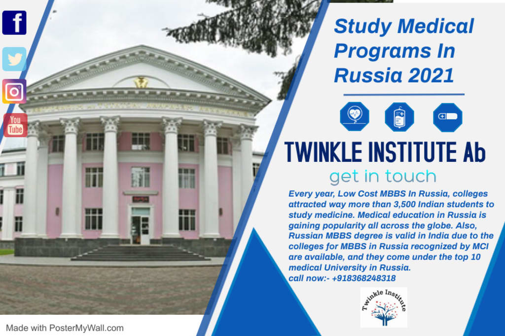 Medical Study in Russia is exceptionally straightforward for a customary student as a result of any student from all over within the world can take direct MBBS Admission with no examination. MBBS expense in Russia is low because the Russian Government provides associate education grant. the normal MBBS expense in Russia is between a try of.5 Lacs five|to five} Lacs for every year. All Russian Medical Universities unit recorded in UN agency ANd MCI so a student UN agency gets associate MBBS degree from Russia can follow anyplace at intervals the planet at the side of the land. Students from everywhere on the planet attend Russia for MBBS Study and every single medical university provides quality medicinal coaching job and wise data.
