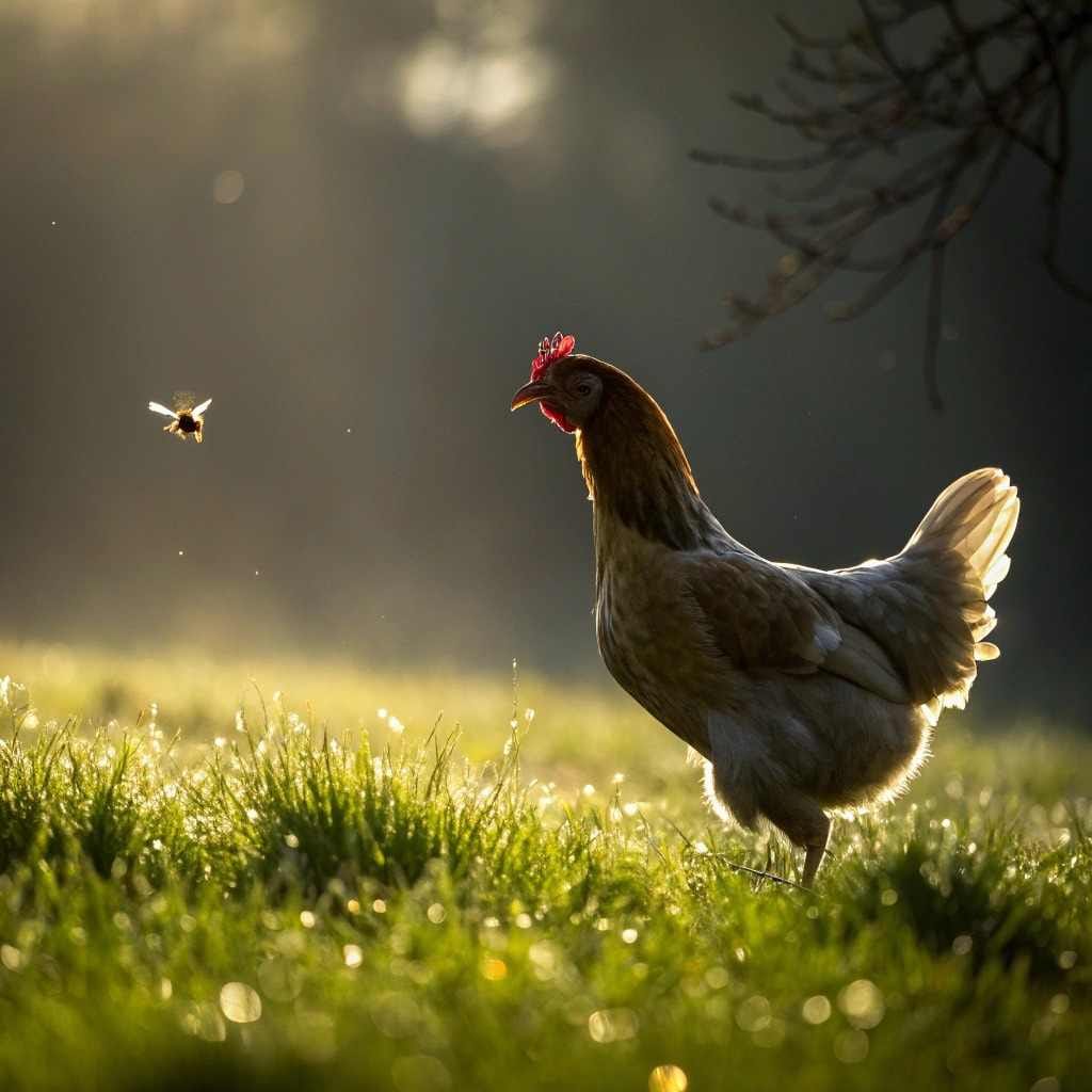 A lamppost in the middle of the city illuminated the surroundings with a golden glow on a night. It appeared as though time itself had stopped because of the profound silence. A single hen stood in the silence of the world, devoid of all sound. As if deep in thought, its eyes held a certain mystery. It moved slowly, one step at a time, but it didn't look like it was going anywhere. It looked like it was looking for something that could only be found in the dark.