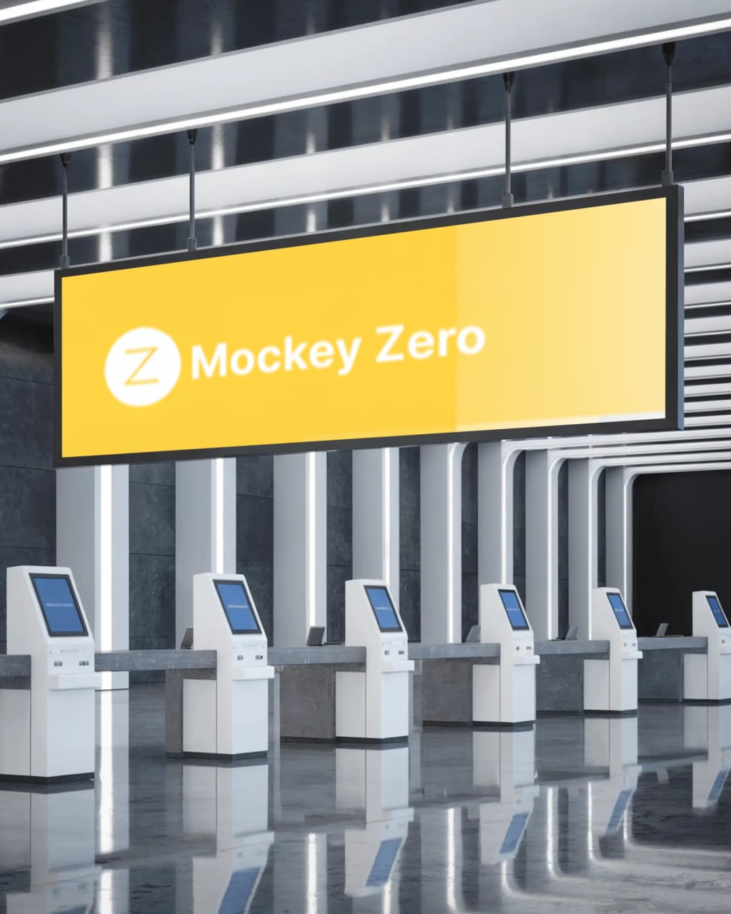 Mockups of hanging banners usually include wide-angle views of indoor spaces, which makes your design appear as if it’s floating in the middle of a bustling environment. It’s an excellent way to give your design a sense of presence.