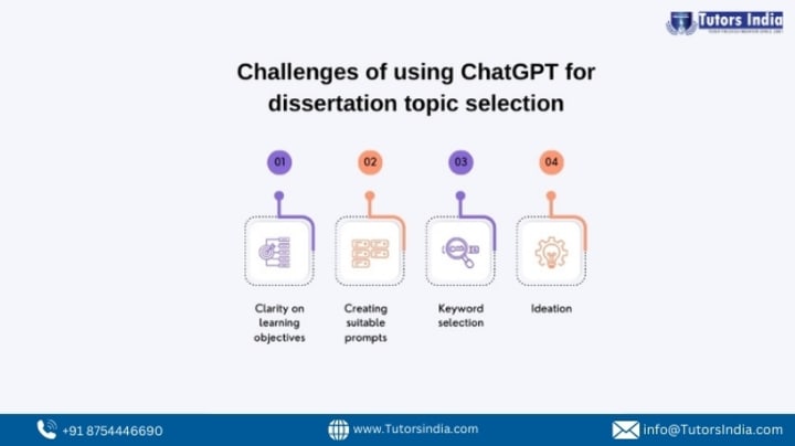 Selecting a dissertation topic is crucial for writing a high-quality dissertation. ChatGPT can offer thesis subject ideas through prompts, helping students frame topics that interest them. However, challenges may arise, as described below: