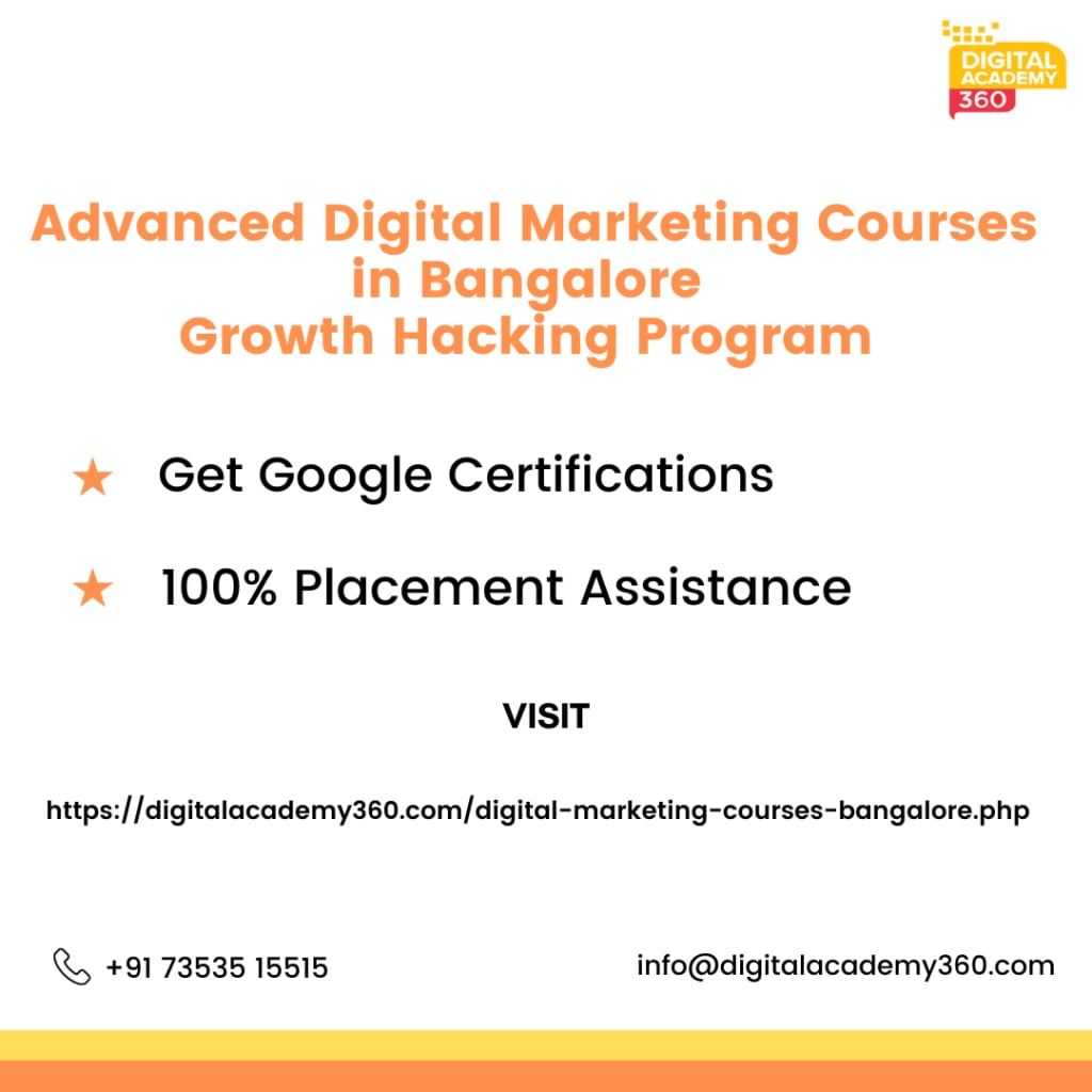 Digital Academy 360 is offering digital marketing courses in Bangalore, take training on 100+ modules, 20+ certifications with affordable fees & placements https://www.digitalacademy360.com/institutes/digital-marketing-courses-bangalore/