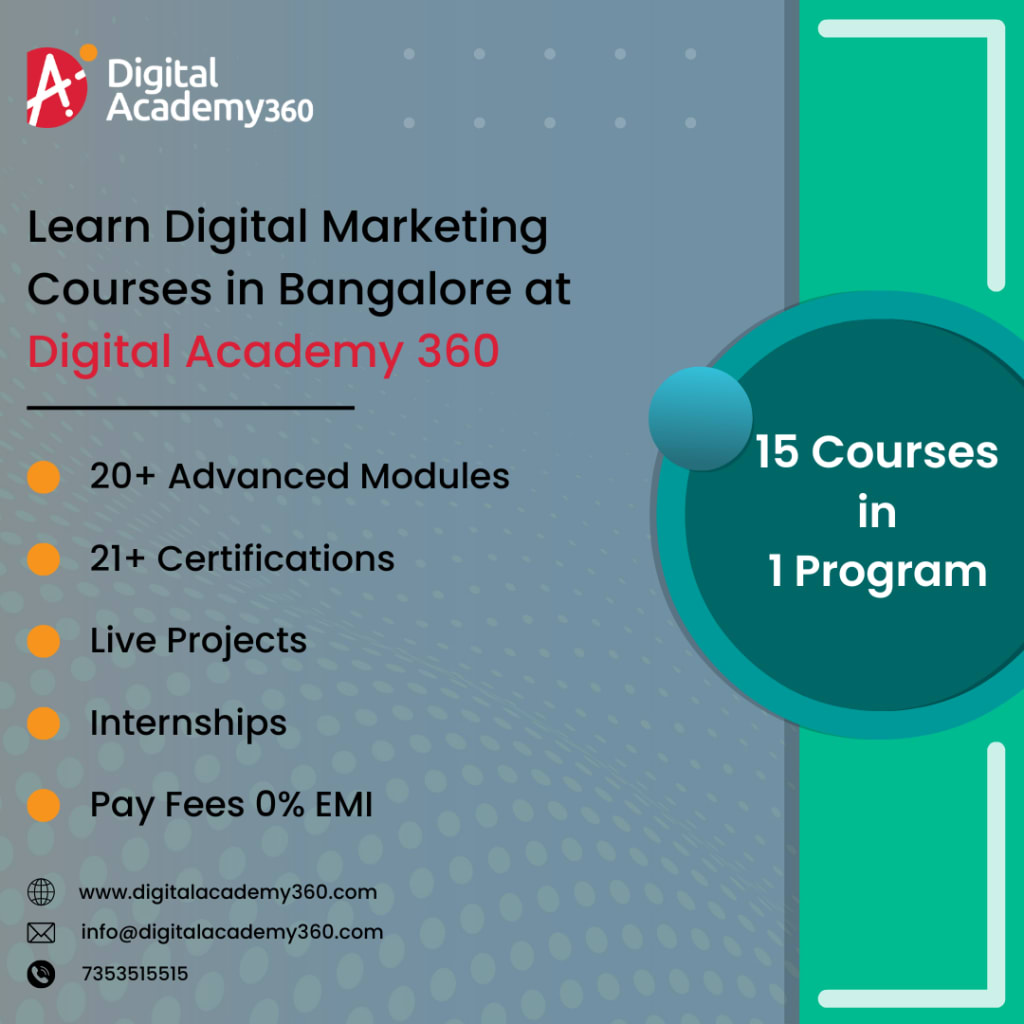 Digital Academy 360 is offering digital marketing courses in Bangalore, take training on 100+ modules, 20+ certifications with affordable fees & placements https://www.digitalacademy360.com/institutes/digital-marketing-courses-bangalore/