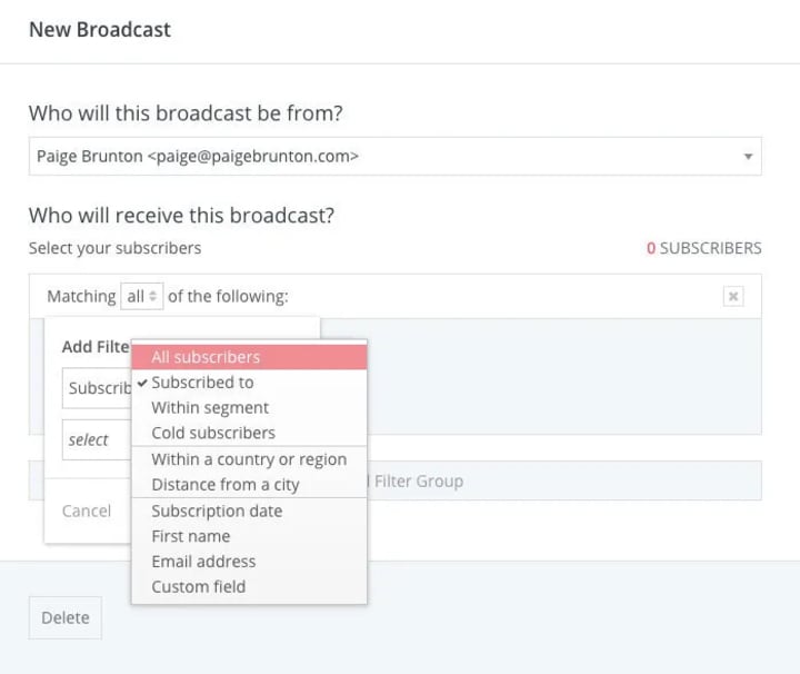 1. Broadcasts: A broadcast refers to a one-time email sent to your entire email list or specific segments. For instance, when publishing a new blog post, you can send a broadcast to your entire list. However, during a course launch, you might choose to send emails exclusively to individuals interested in that particular course. These segmented broadcasts ensure targeted communication with your audience.