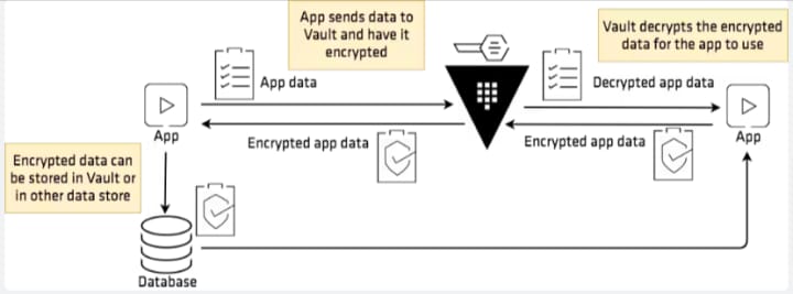 When data is stored in Vault, it undergoes encryption. This process essentially scrambles the data, adding an extra layer of security. So, even if someone unauthorized tries to access it, they won’t be able to make sense of it. (Below is the graphical representation)