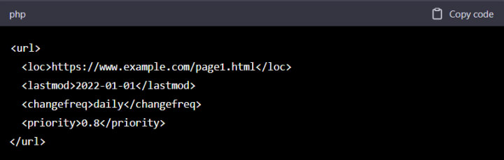 Add URLs to the sitemap: Next, add each URL for the website to the sitemap. Each URL should be defined using the following code: