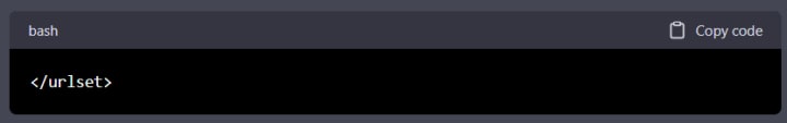 Close the URL set: Once all the URLs have been added to the sitemap, close the URL set using the following code: