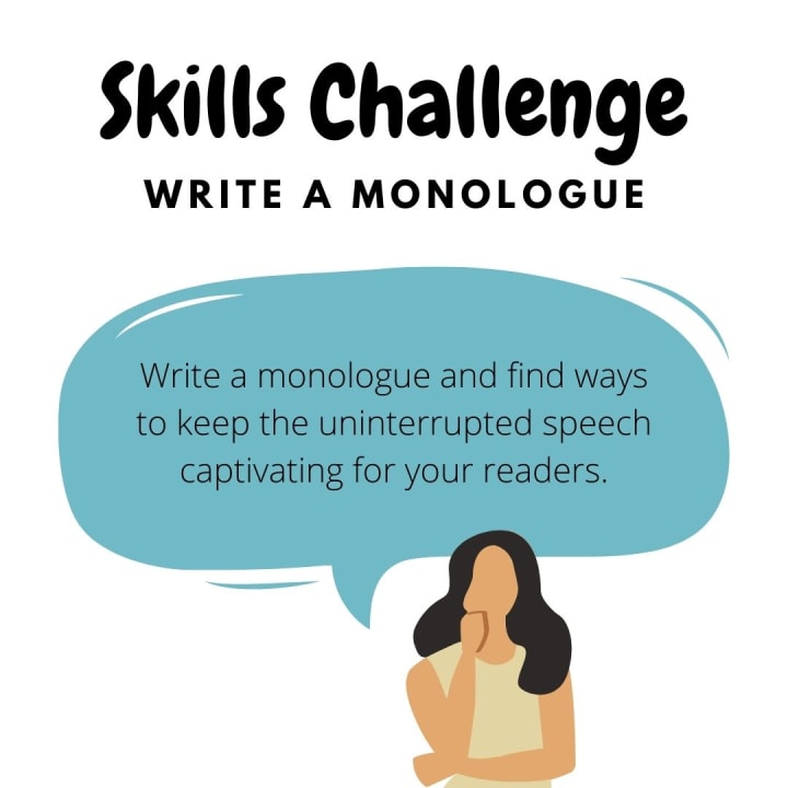 For the last prompt of the week, I want to push you to develop your writing skills by asking you to write a monologue. It is rare in fiction that we include monologues. We might include long paragraphs of inner thought, but long paragraphs of someone speaking without being interrupted? That's not seen often. This said, write a monologue, a speech. It could be a welcome back speech from a principal to his students, or a eulogy, or a breakup speech. No matter what, only one person should speak the entire time. Others are present, but they can’t or don’t dare to interrupt the speaker.