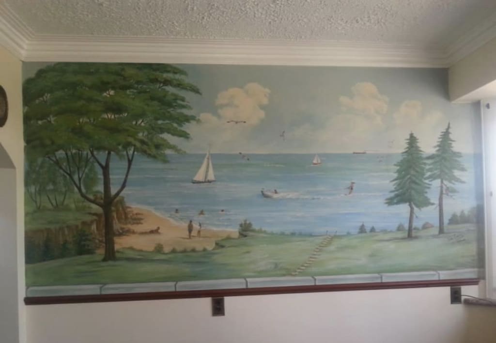Gran doesn’t remember buying that six-bedroom, four-and- a-half bath house, so I may never ask her what prompted her to do so. I’ll never know why she loved Nat King Cole so much, or why I never cared before. I stare at the window seat in the living room that I didn’t spend nearly enough time in. Had Gran bought the house with the intent of spending reading hours in that quaint nook? Or did she buy the house because of that little door beneath the grand staircase that overlooks the basement? Perhaps my grandmother decided on this house because of the mural in the breakfast nook depicting a sunny day at the beach complete with water-skiers and sun-bathers, painted in 1966. Will my children never get the chance to gaze at this mural while enjoying chocolate milk and grilled cheese from the waffle iron as I did?