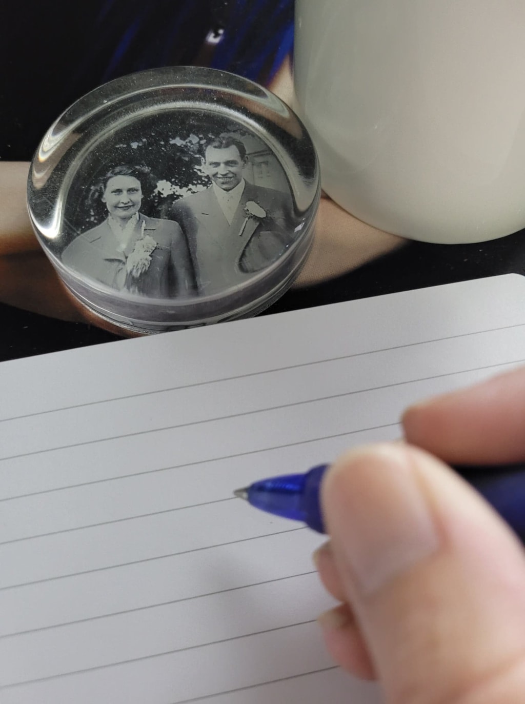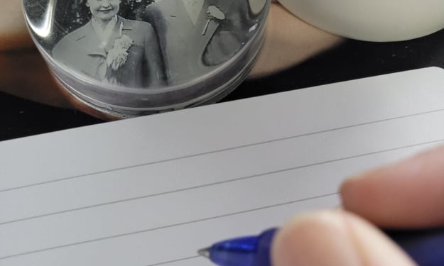 Returning the music box to the shelf I slowly unfold the paper to reveal my grandmother's handwriting. “What!?” I gasp, hurrying to soften the folds that have cracked over time to better read her words.