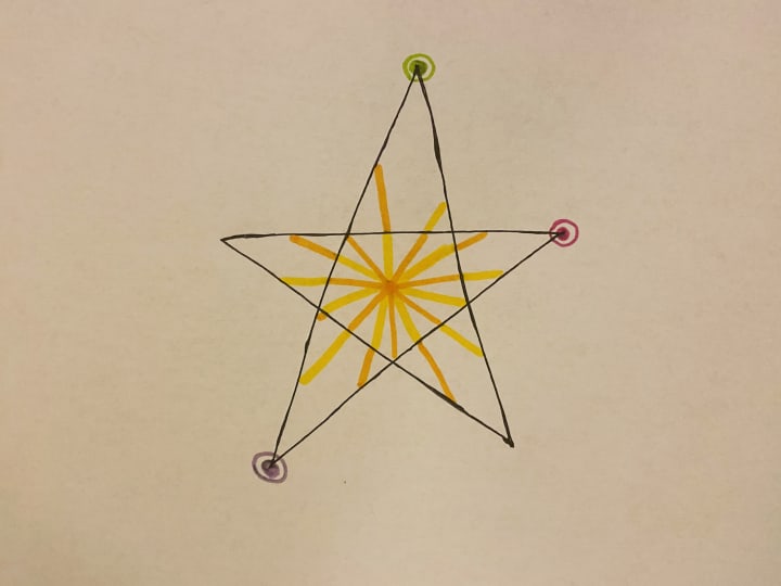 Finally, you’ve reached the top-right corner of the star, which marks its second halt. Once you change direction and trace the line that heads to its third, you will finally see and know for sure that what you are sketching is a star.