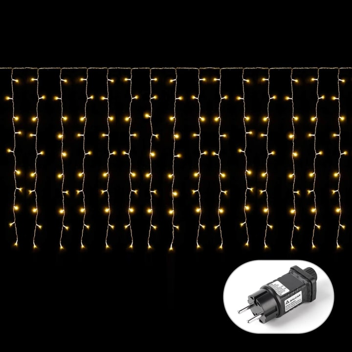 The "SALCAR 6m x 1m Ice Rain, Outdoor Indoor Light Curtain" is a dazzling spectacle that brings the ethereal beauty of ice rain indoors and outdoors. Measuring an impressive 6 meters by 1 meter, this light curtain boasts 300 LEDs, creating a mesmerizing cascade of warm white light. Designed for versatility, it's perfect for windows, Christmas decorations, or any space where you want to infuse a touch of enchantment. With 9 modes and a memory function, you can customize the ambiance to suit any occasion, from festive celebrations to intimate gatherings. The waterproof construction ensures durability, making it suitable for outdoor use, and the simple yet elegant design adds a touch of sophistication to your decor. Elevate your space with the magical allure of the "SALCAR 6m x 1m Ice Rain, Outdoor Indoor Light Curtain," transforming any setting into a radiant display of light and wonder.