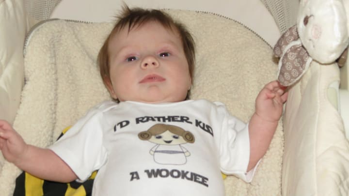 And what do you get when you have a child with the most exhausted man on the planet? Obviously a child who never sleeps. It's as if the years her father spent sleeping extra somehow counted towards her own sleep. And because he remained the most exhausted man who ever lived, guess who had the unparalleled joy of staying up every day with her bundle of joy? That was rhetorical.