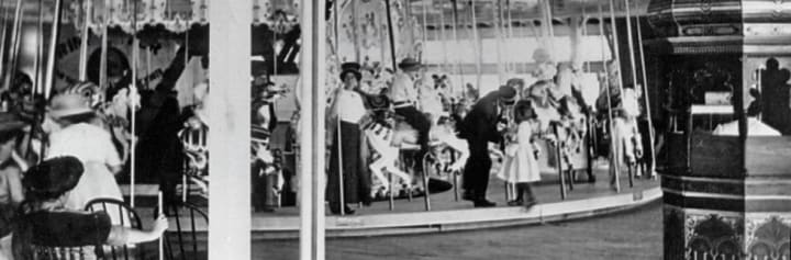 My favorite ride when I was little was the 1911 Looff Carousel. Charles ID Looff was a Danish wood carver who brought the carousel to the boardwalk.