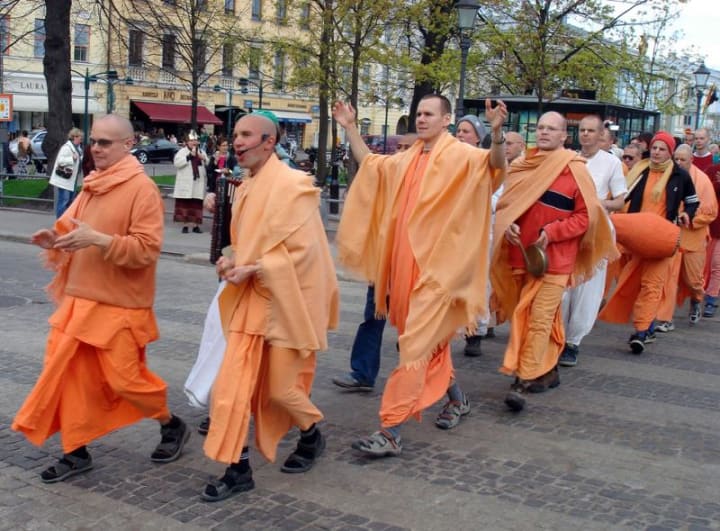 Hare krishnas shave their heads and wear togas. Even many of the women shave their heads.