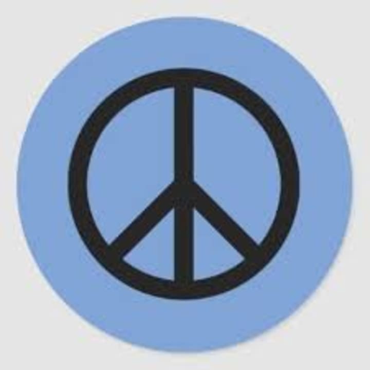 Another peace sign was drawn or painted. It is make up of a circle with a line bisecting it and two shorter lines running from that diagonally.