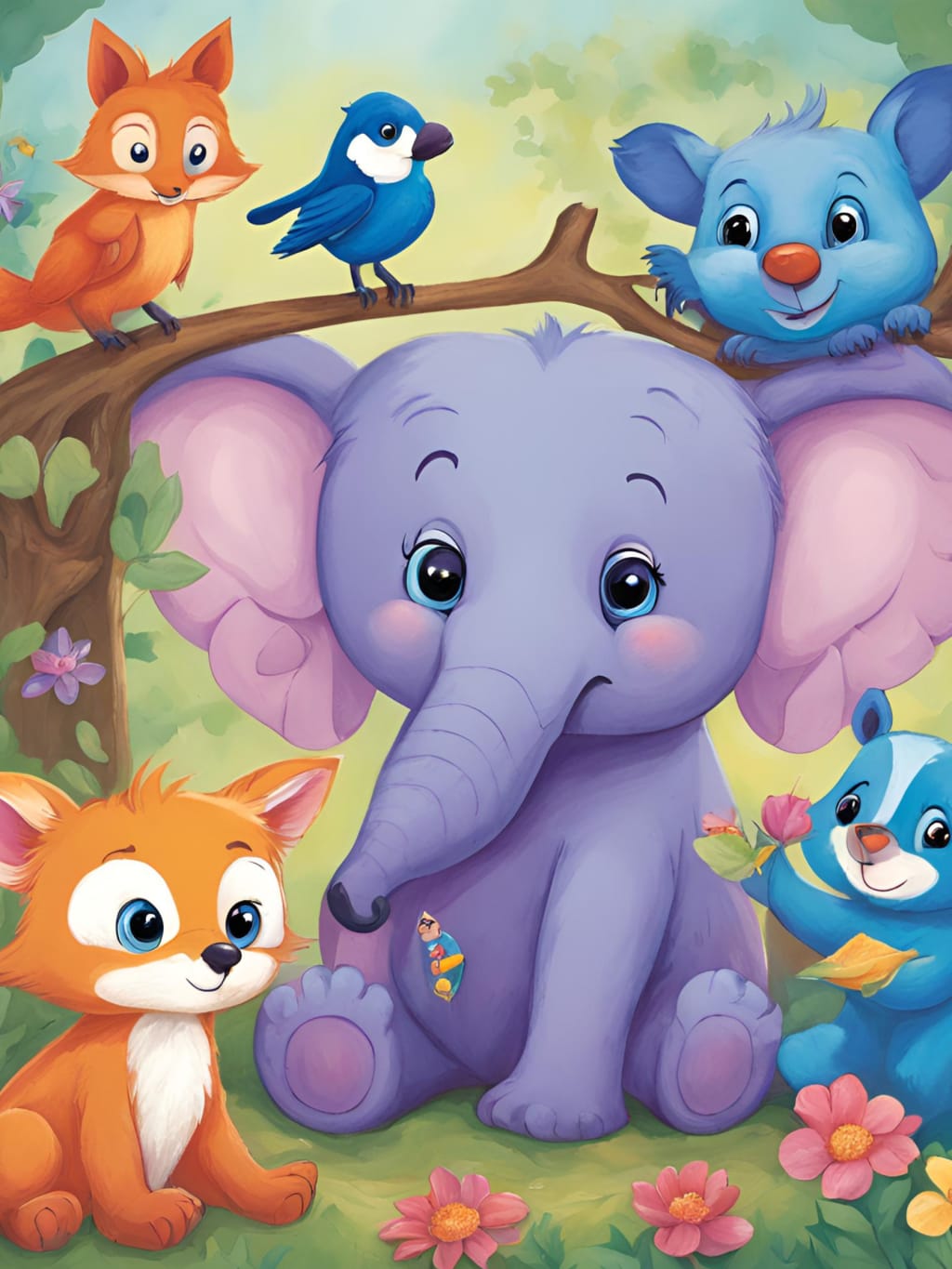 Ollie – A playful, purple elephant with a big heart and a cheerful attitude.