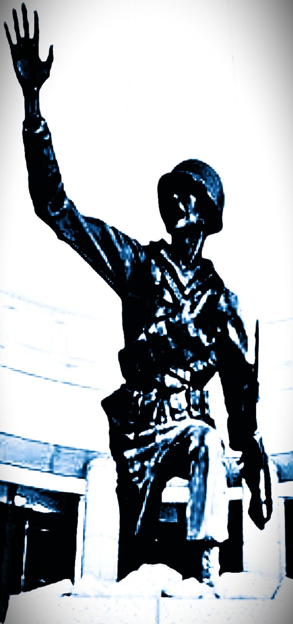 An old pickup truck sped past Sean, and the cloud of clay quickly grounded him again. He spat a few times before realizing he was at the edge of town, headed right towards the old man’s booth in the town square. Just as he rounded the first metropolitan corner of his hometown, he got a glimpse of the WWII memorial. A beautiful black marbled statue of a soldier waving his hand over his head, encouraging his friends to follow him. For a history major, it was quite sad that he hadn’t ever noticed this beautiful remembrance in his own hometown until now. He stopped for a moment, and stared at his reflection in reflecting darkness.