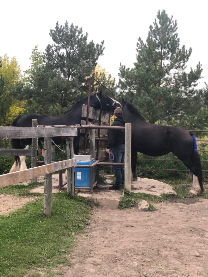 Rhea Borealis Sophia, our foundation Shire mare, just came home two weeks ago from training followed by several days at the breeder's home to meet the stallion. I'm immensely excited to share the news that we discovered she was successfully impregnated when we took her for her fifteen day ultrasound on Friday. Once Amy and Marjorie are safely home with her, we will have our first three Shire mares, bred for the same time of August 2021 to foal.