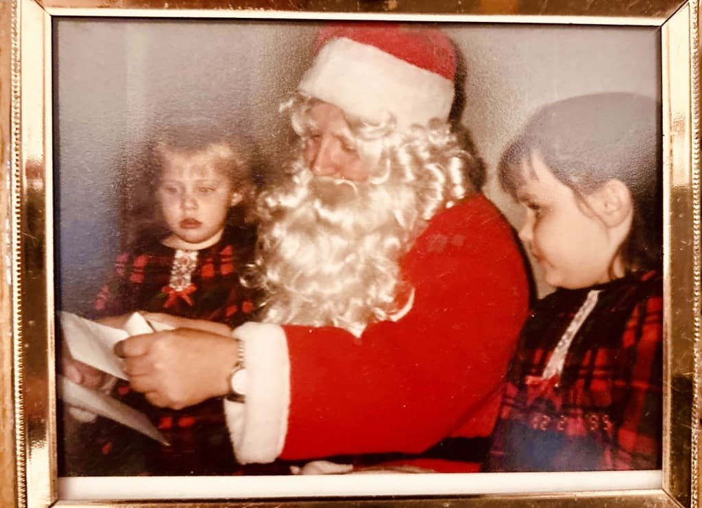 When my little sister was of an age to fully appreciate the wonder of Christmas, Santa began making house calls. Usually, these visits from St. Nicholas occurred about a week or so before December 25th. After supper, my sister and I would have our baths and don our matching Christmas pjs before settling in front of the Christmas tree to listen to our mother read one of the many Christmas books we had. In the middle of the story, there would come a knock at the front door. Imagine our shock, when we opened the door, to see Santa Claus standing on our front porch! The first time he paid us a visit, I was too stunned to speak, which was a shock to my family given my gregarious proclivities as a child. He'd come inside and seat himself on our sofa, my sister and I on either side, and after an exchange of pleasantries, Santa would reach into his big red bag and pull out our letters! He even had a few early Christmas goodies stashed away for us: usually, a small toy and a sweet treat. He never stayed for a long time, and when he departed, we always tried to see if we could catch a glimpse of his sleigh, but he always disappeared without a trace! But we knew he'd be back in just a few, excruciatingly long days.