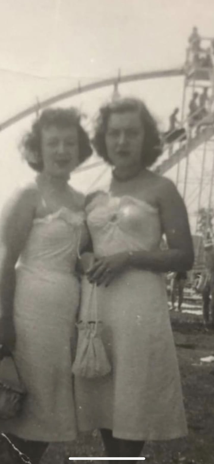 When she collected herself, she showered and washed all that sadness away, temporarily. As she was about to leave the house, she felt a nagging need to open the tub again. She pulled out pictures, albums, and old drawings from one of the grandkids. Then she noticed at the bottom of the tub was in fact a small well-worn notebook. The cover was a simple black and white picture of her mother and her aunt. They were beautiful, and so young. Taken at what looked to be an amusement park.