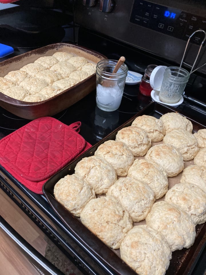 In their homes, my aunt and grandma began their journey to create the best packed Grandma Breakfast they could do. My great grandma used to make the best biscuits and gravy, and the tradition of having a grandma breakfast on Christmas morning hasn’t ceased; 2020 isn’t stopping that. Biscuits, gravy, eggs, bacon and so many more things are in the works. I received the below picture from my mom as well as she’s also pitching in to make breakfast. I can smell the biscuits.... mmm delicious.