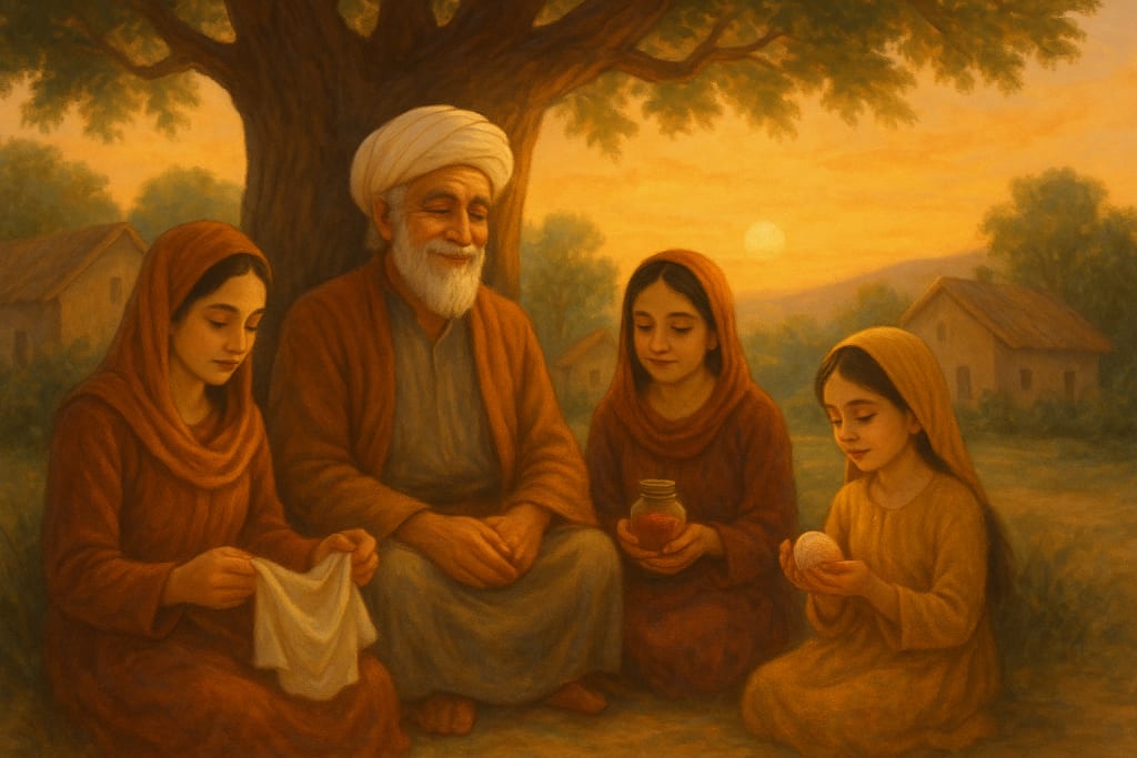 But at home, Nasrudin was not the famous philosopher. He was a father. And his greatest treasure was not his donkey, not his books, but his three daughters—Layla, Amina, and Yasmin.