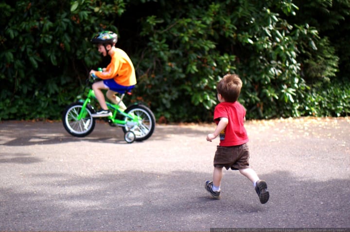 One time, Billy decided to ride my bicycle, which still had training wheels on it, since I hadn’t mastered being able to balance the bike just yet. When I saw him, I was determined to make him get off so I could ride it.