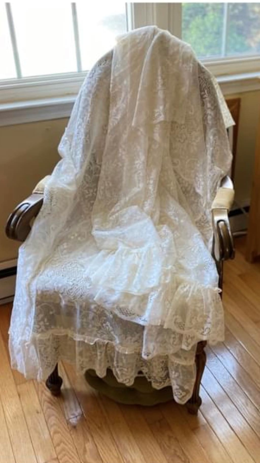 “Those curtains were made of what was once our grandmother’s wedding dress.” He said. I always thought you took them to do something special with them.