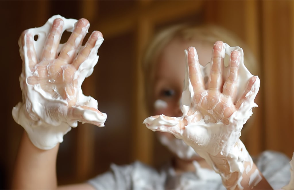 I haven't played with foam for a long time. Dad doesn't have to shave much lately. Now he is bald.